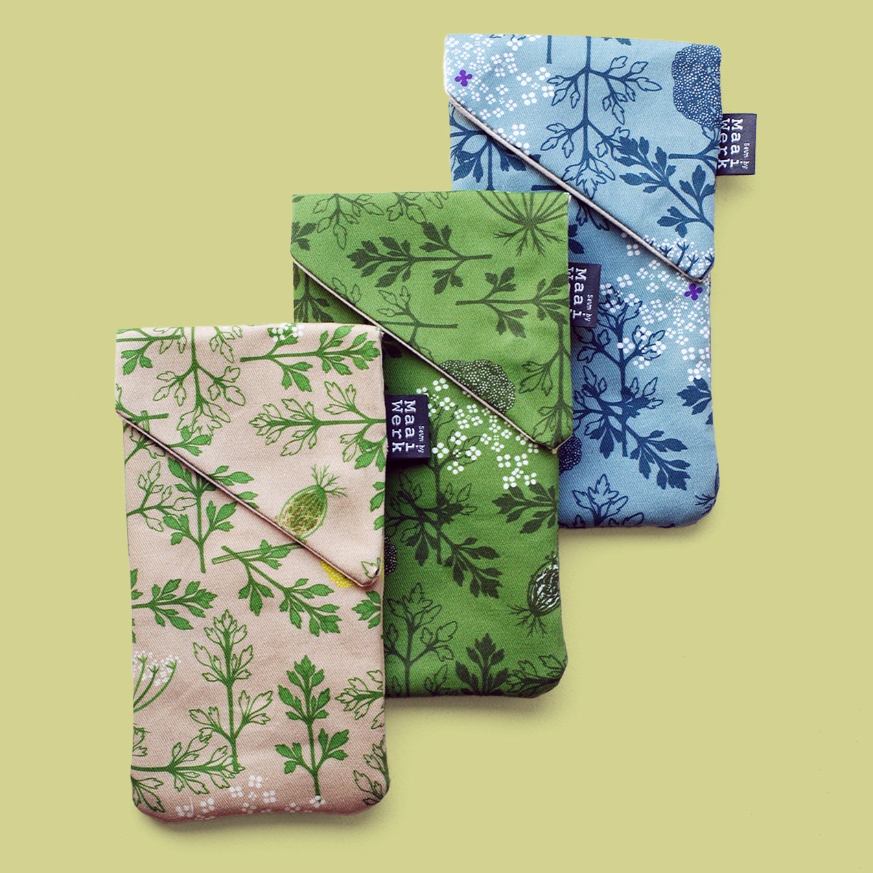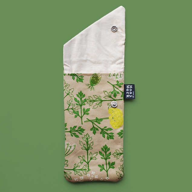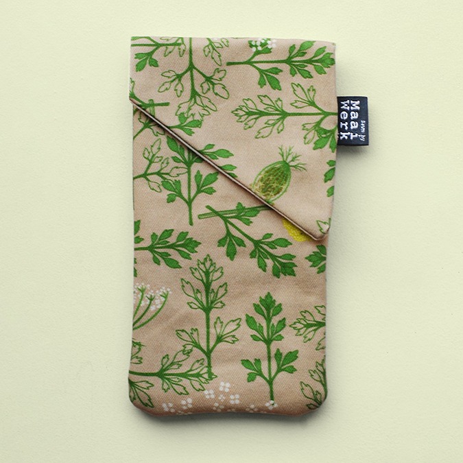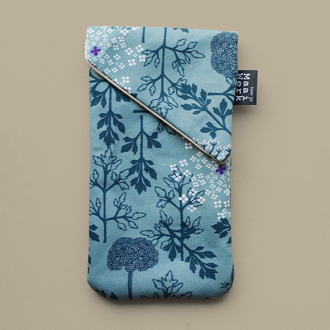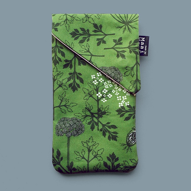 Deze telefoonhoes of brillenhoes met wilde bloemenprint brengt de wilde peen, een prachtige bloem uit onze weiden en velden, naar jouw handtas. Koop hem in alle kleuren van een zomerwei (multi) of in een meer monochroom blauw of groen. Alle bloemenschermen hebben wel het typische paarse bloemetje in het hart!