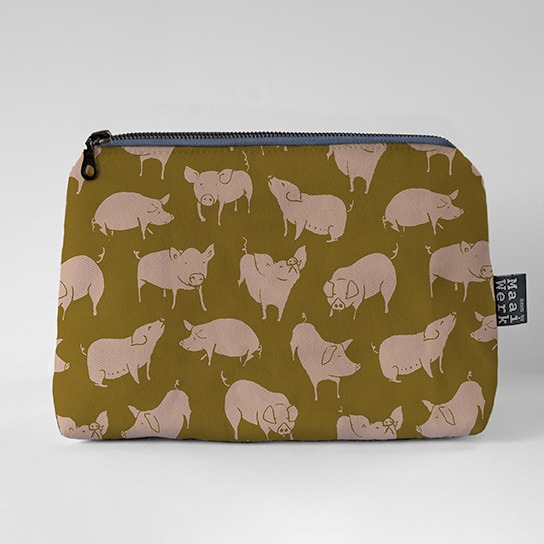 Een leuke toiletzak met Piggies print in 5 verschillende kleurcombinaties. Deze toiletzak is gemaakt in zachte en stevige biokatoen gabardine (GOTS). Hij is 19 cm breed en 13 cm hoog, met binnenzakje. Ook de voering is van 100% GOTS gecertificeerd biokatoen. Wil je hem in een andere maat, dan kan je daarvoor een berichtje sturen. Je kan ook andere items met de varkentjesprint vinden in de shop.