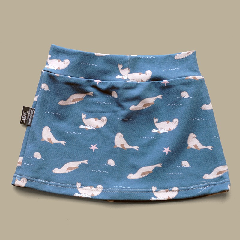 Dit superschattige rokje met zeehondjesprint is zacht en rekbaar, ideaal voor baby’s lange zomers. Het is verkrijgbaar in maat 56-98. Een rokje in maat 68 is 20 cm hoog van de taille tot de zoom.